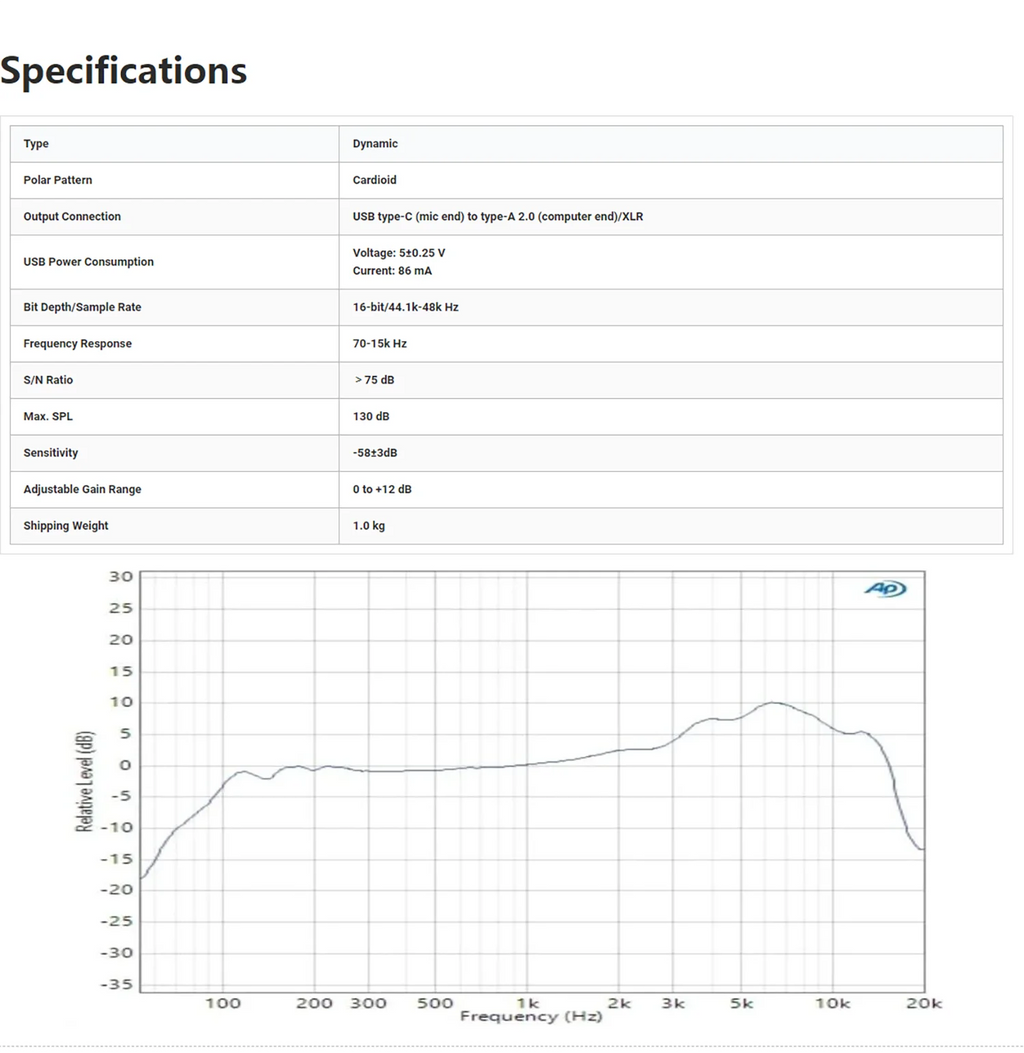 • Conectividade dupla USB e XLR para uso com PC ou interfaces profissionais
