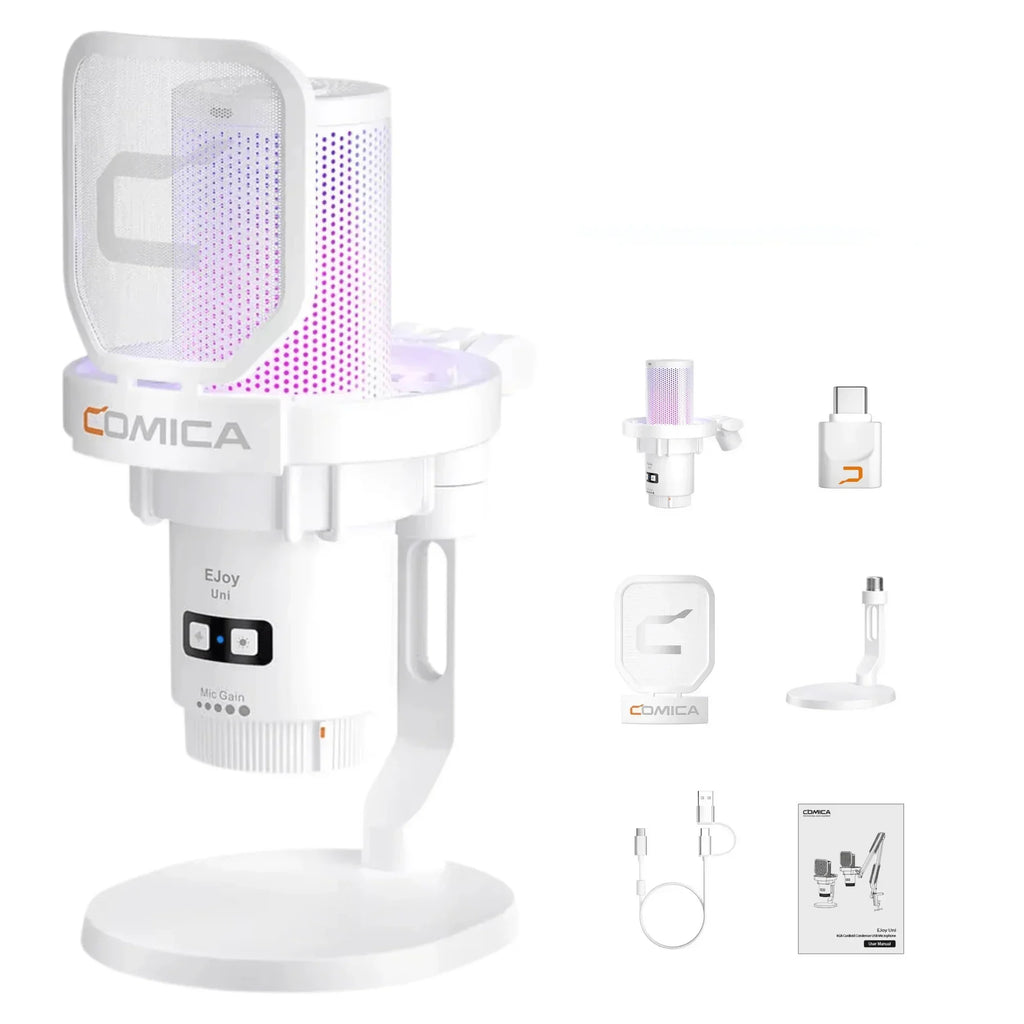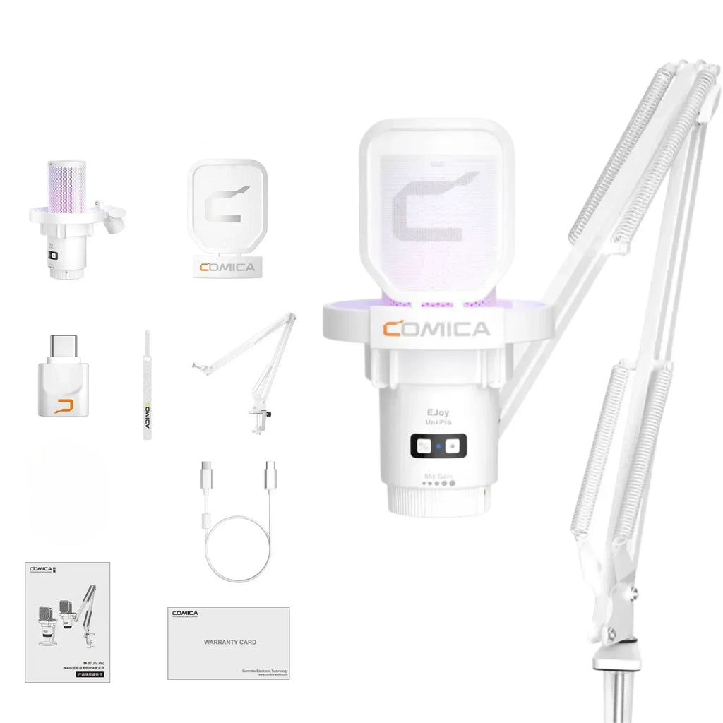 Com o Comica Uni Pro RGB, sua voz ganha o destaque que merece, aliando tecnologia de ponta e design inovador para garantir uma experiência incomparável. Leve seu conteúdo a um novo patamar e sinta a diferença de um microfone projetado para profissionais que buscam excelência e exclusividade.