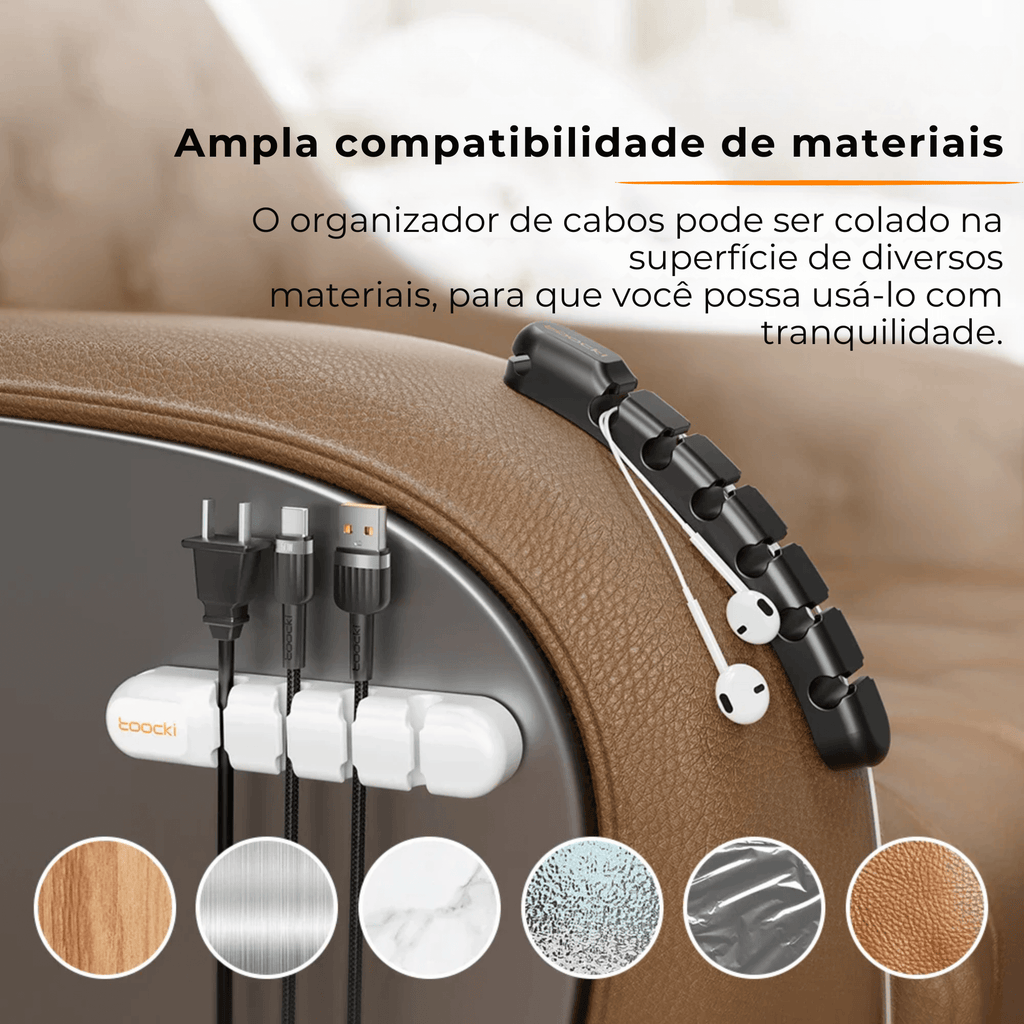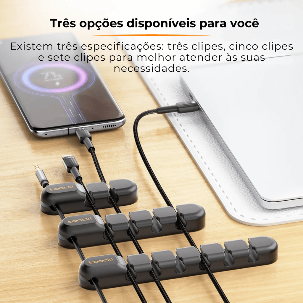 - Versatilidade na organização: suporta cabos de diferentes tamanhos e espessuras, ideal para todos os seus dispositivos.